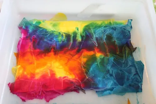 Tissue paper in various colors (water-based ink or washable markers also work)