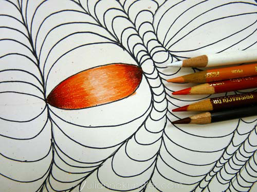 Use colored pencils to create smooth transitions from light to dark, enhancing the illusion of depth or curvature.