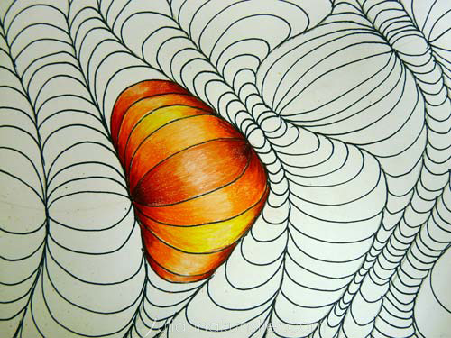 Draw curved grids and color in alternating patterns to create a rippling or wave-like effect.